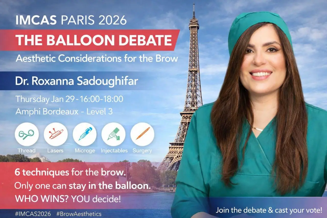 Dr. Roxanna is an international lecturer and faculty at major global congresses, including IMCAS Paris, IMCAS Asia, EADV, Dubai Derma, and MEIDAM. She is also the Founder and President of the Middle East Hair Research Society (MEHR Society) and continues to lead research, education, and editorial innovation in the field of hair science.