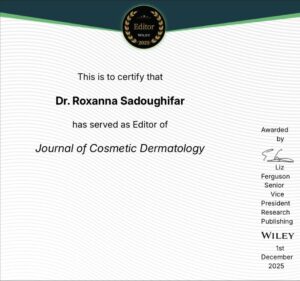 Dr. Roxanna is an internationally recognized expert in hair and scalp disorders, hair restoration surgery, and regenerative hair medicine. She serves as Series Editor of the Hair and Scalp Disorders Book Series (Springer Nature) and holds leading editorial roles, including Chief Editor of the Journal of Applied Cosmetology, Associate Editor of the Journal of Cosmetic Dermatology (Wiley), and Former Associate Editor of Dermatologic Therapy (Wiley).