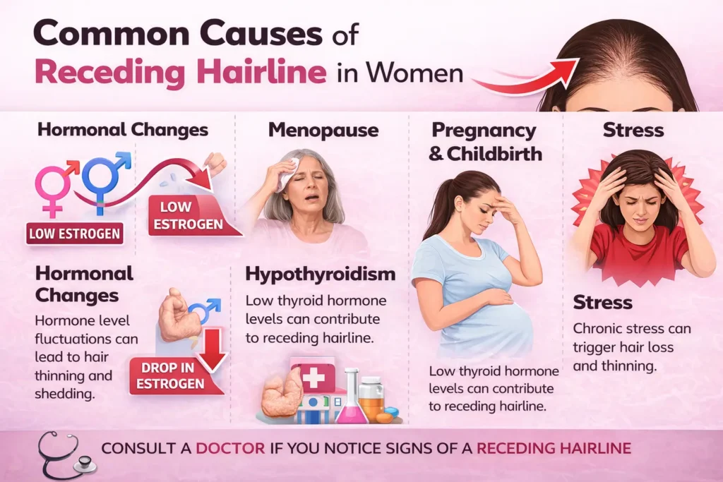 Yes, women can absolutely experience a receding hairline. While it is more commonly discussed in men, many women face hair thinning and hairline recession due to genetics, hormonal changes, styling habits, or medical conditions.